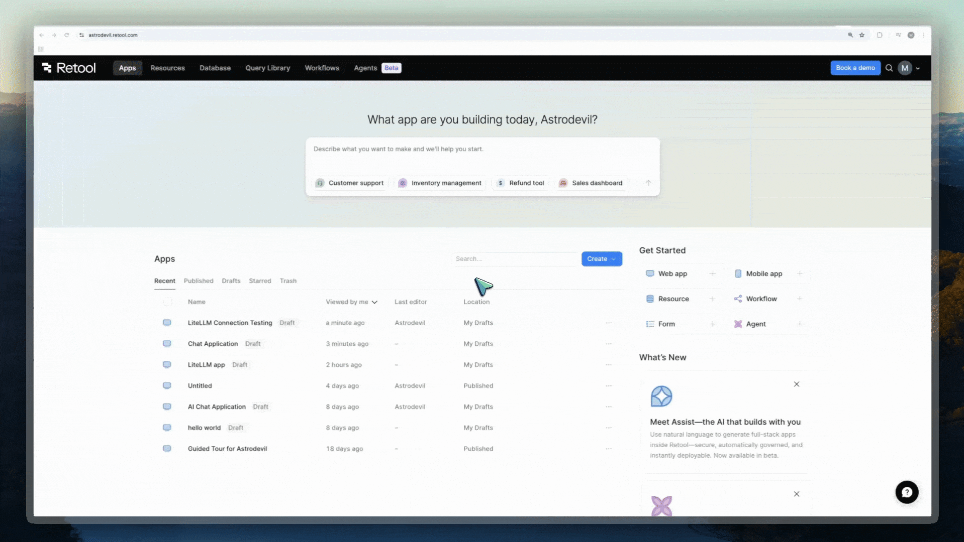 - Open an app in Retool and enable Assist (if not already enabled in your organization)
